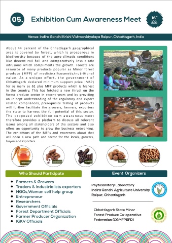 The exhibi ons of the MFPs and awareness about that Chha sgarh export.