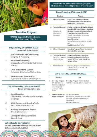 resilient to climate change and with higher produc vity and best CoPs, Speed & Smart Breeding technologies, Breeding 4. Smart Breeding Technologies: Session Title